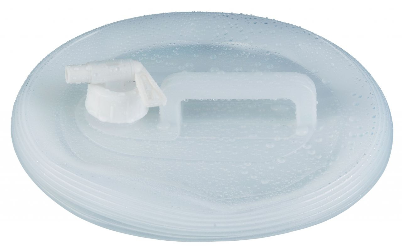 Skládací kanystr na vodu s pevným uchem na snadné přenášení a s praktickým kohoutkem.