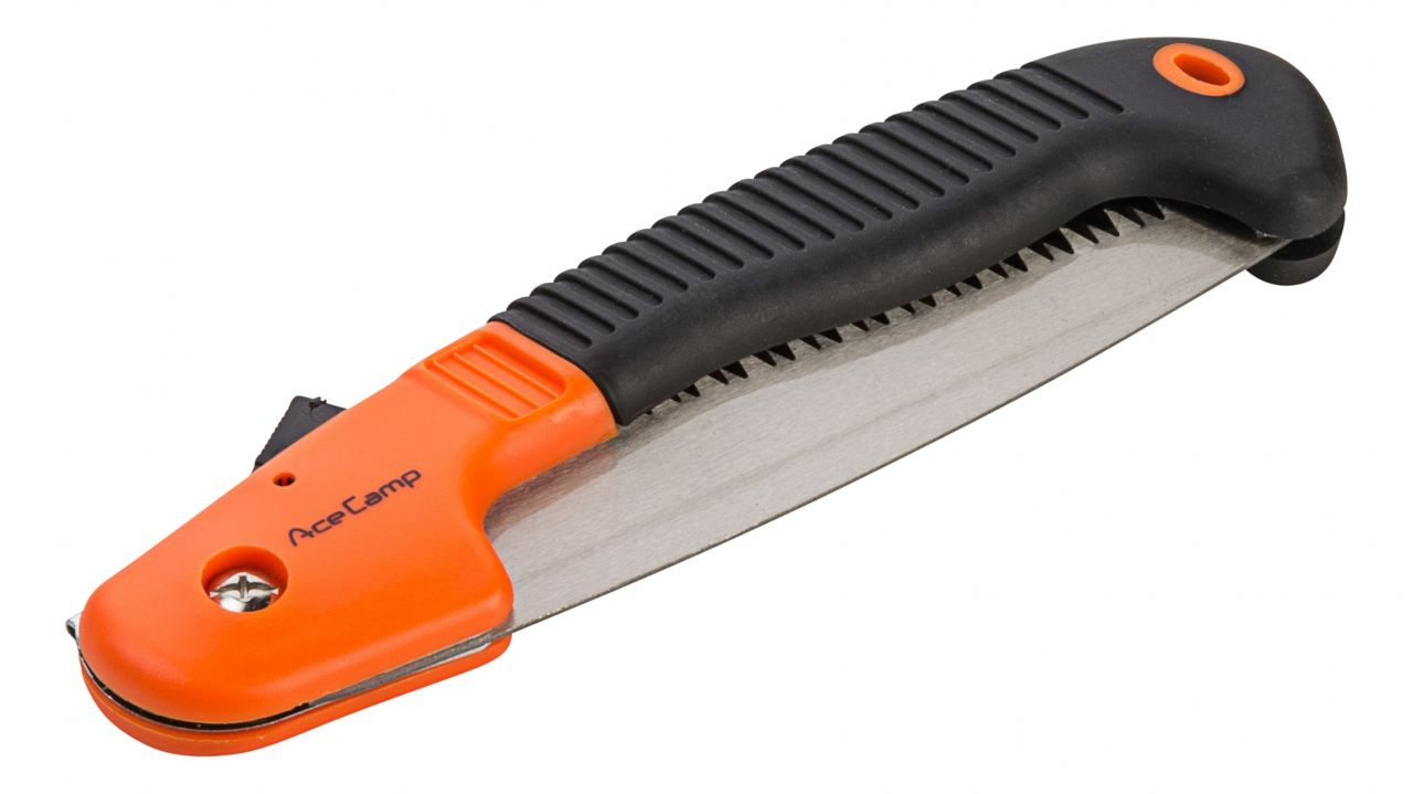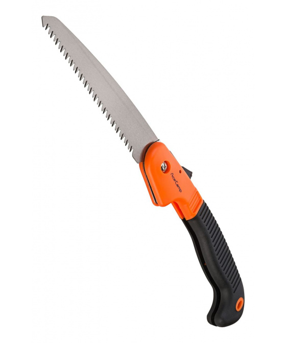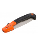 Kompaktní skládací ruční pilka s pojistkou proti náhodnému otevření.
