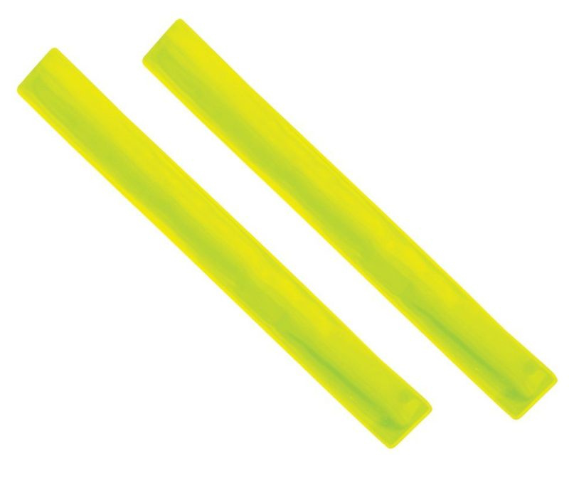 žlutá samonavíjecí reflexní páska s pružinovým efektem zajišťujícím uchycení na jakýkoli druh oděvu, vhodná k použití na ruku, nohu či k upevnění na vybaveníVíce