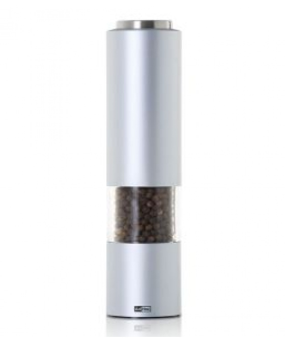 Elektrický mlýnek na pepř či sůl eMill v světle modré barvě se jedním stiskem tlačítka mlýnek spustí. Efektní LED podsvícení. Baterie součástí balení. Mlýnek se pyšní patentovaným mlecím mechanizmem CeraCut® s 30ti letou zárukou.