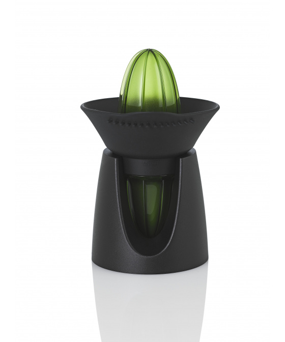 Lis na citrusy lze použít ve stojánku, přímo na sklenici nebo v ruce. Jednoduché použití 2 velikostí lisu pomocí ohebné silikonové nálevky. Součástí nálevky jsou hroty pro zachycení dužiny či pecek. V zelené barvě.