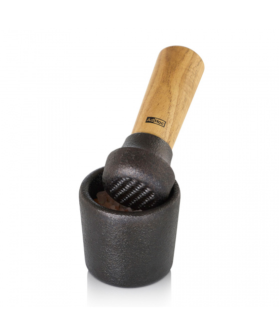 Skvělý dárek pro kuchaře i gurmána! Hmoždíř CAMO značky AdHoc je vyrobený v kombinaci akácie a litiny. Hmoždíř je úzký a tím koření zůstává v nádobě a neutíká všude kolem. Drážky v nádobě i tlouku zaručí důkladné rozemletí.
