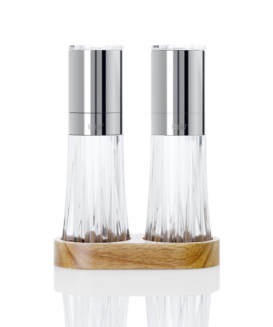 AdHoc Mlýnek CeraCut MENAGE CRYSTAL čirý set 2 kusů s podstavcem