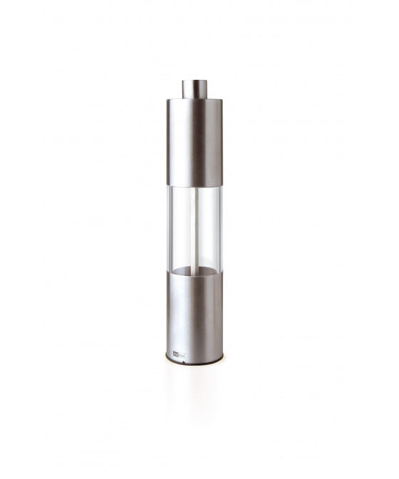 Mlýnek ruční MP20 na pepř a sůl je vyroben z nerezu a akrylu. Jelikož je průhledný, naplněný kořením je požitkem nejen pro chuťové buňky, ale i pro oči. Keramický mlecí mechanismus se dá regulovat pro jemné i hrubší mletí.