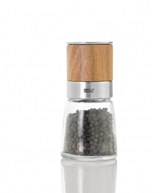AdHoc Mlýnek na sůl a pepř AKASIA, keramický mlýnek CeraCut sklo/nerez/dřevo