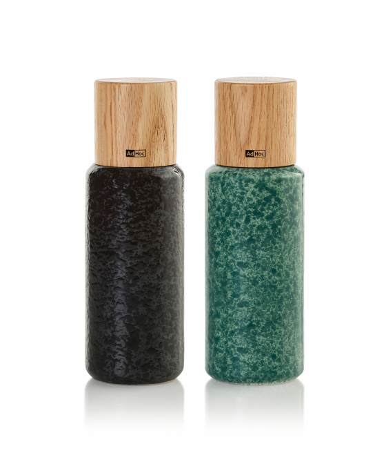 AdHoc Mlýnek na sůl nebo pepř 2 kusy červený dub/keramika Yara, zelený 18 cm