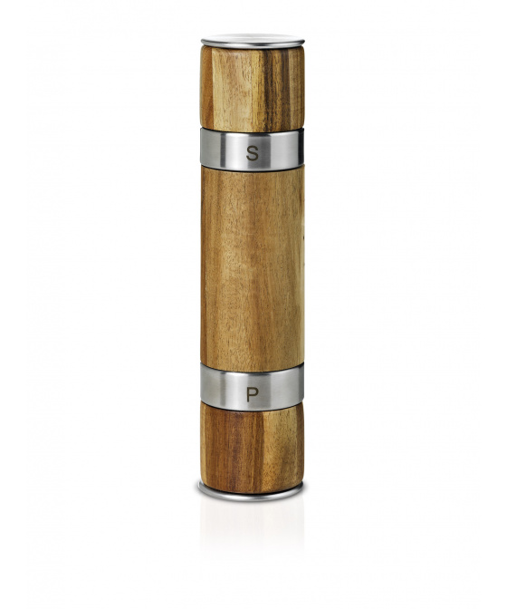 Sůl i pepř v jednom! Mlýnek DUOMILL je oboustranný ruční mlýnek na pepř a sůl s keramickým mlecím mechanismem. Ohromí úžasnou kresbou akátového dřeva a svou nadčasovostí. Na jeho ocelových prstenech najdeme označení S a P pro rozeznání soli a pepře.Více