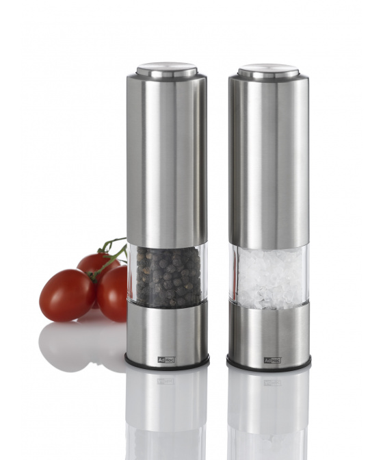 Skvělý dárek pro gurmána i kuchaře - set 2 ks elektrických mlýnků PEPMATIK značky AdHoc! Mlýnky jsou určené pro pepř a sůl a vybavené LED osvětlením i plynulým nastavením požadované jemnosti mletí.