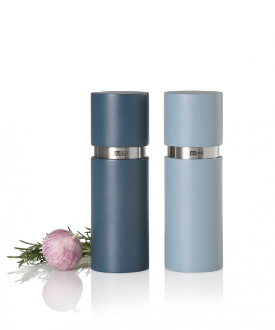 Set dvou mlýnků na pepř či sůl TEXTURA modré barvy se pyšní patentovaným mlecím mechanizmem CeraCut® značky AdHoc s 30ti letou zárukou. Mlýnky z dubového dřeva jsou šedě a modře lakované a tím jsou vyjímečné.