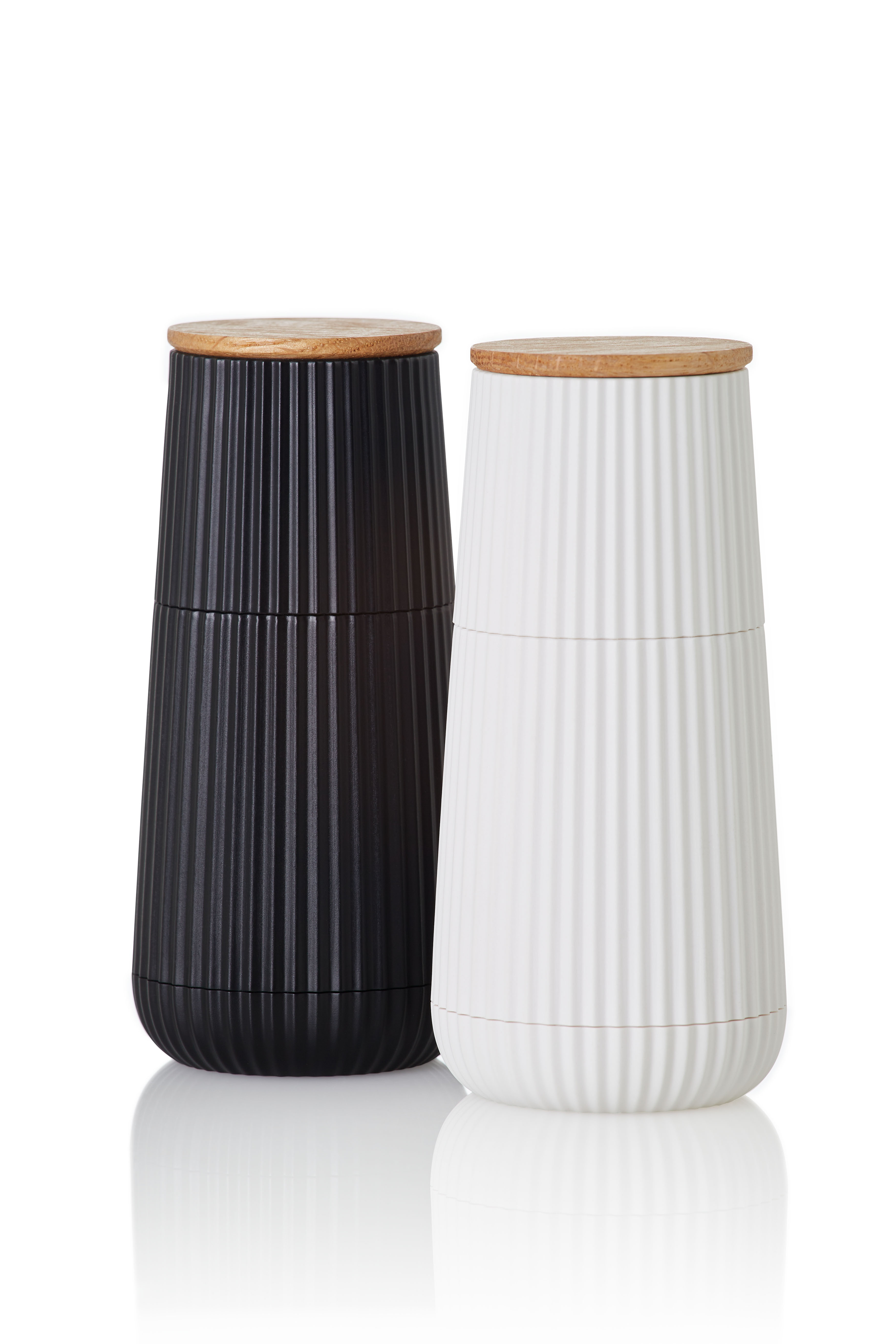 Mlýnek Scape je ve velice zajímavym designu. Barva bílá a černá je ideální na rozpoznání pepře a soli. Akáciová zátka zajistí že když se mlýnek postaví na stůl, tak neunikne ani drobek. Mechanizmus CeraCut® značky AdHoc s 30ti letou zárukou.