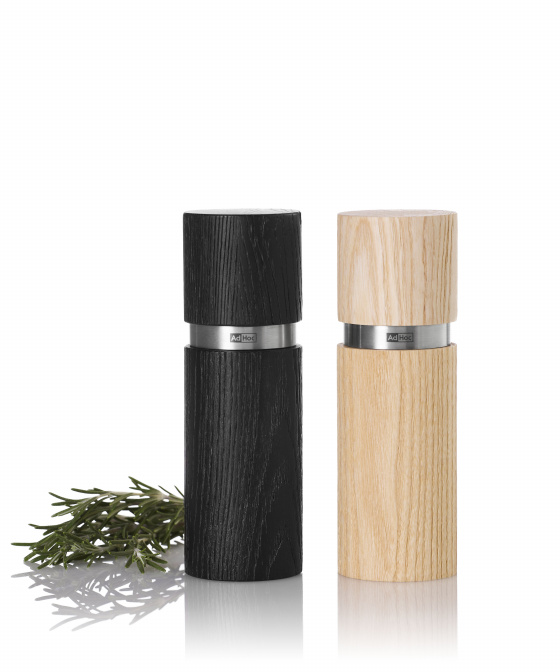 Set mlýnků na pepř či sůl TEXTURA se pyšní patentovaným mlecím mechanizmem CeraCut® značky AdHoc s 30ti letou zárukou. Mlýnky z přírodního světlého a černě nabarveného jasanového dřeva je tím vyjímečný.
