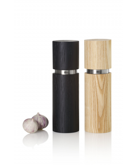 Set mlýnků na pepř či sůl TEXTURA se pyšní patentovaným mlecím mechanizmem CeraCut® značky AdHoc s 30ti letou zárukou. Mlýnky z přírodního světlého a černě nabarveného jasanového dřeva je tím vyjímečný.