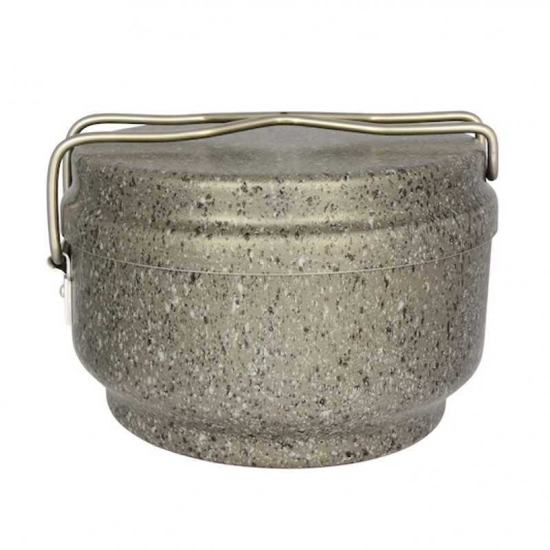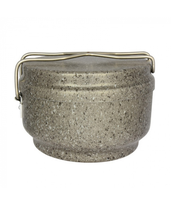 Moderní varianta klasického „armádního“ ešusu v designu STONE. Nádobí se skládá ze dvou dílů (miska + víčko). Sada je vyrobena z hliníku, který má po obou stranách tenoulinkou vrstvu PTFE (tedy teflonu) a v kamenném designu. Hlavní a nezpochybnitelnou předností PTFE je nenáročná údržba a pohodlné vaření – pokrm se snadno připraví a nepřipaluje.