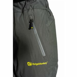 RidgeMonkey APEarel ThermaPro Insulated PantsKalhoty APEarel ThermaPro Insulated Pants poskytují výborné teplo a ochranu před počasím díky stoprocentně voděodolné a větruodolné konstrukci. Silná izolace se syntetickým prachovým peřím udržuje teplo u těla, takže vás spolehlivě zahřejí i při dlouhém sezení v nepříznivých podmínkách.Vrch tvoří odolný ripstopový materiál s vodotěsnou membránou, zatímco vyztužené panely na kolenou, sedu a u kotníků chrání místa, která se nejvíce opotřebovávají. Díky voděodolným zipům po délce lýtek lze kalhoty snadno obléknout i přes boty – skvělé jako pohotovostní vrchní vrstva při náhlém dešti. Zipy jsou navíc kryté légou proti větru.Pas je vybaven voděodolným zipem, drukem a nastavitelným páskem s přezkou, takže si kalhoty pohodlně přizpůsobíte. Spodní okraje lze stáhnout pomocí suchého zipu, aby dobře seděly k jakékoli obuvi. Dvě boční kapsy na zip s fleecovou podšívkou poslouží k uložení drobností i ohřátí rukou.SPECIFIKACE Odolný ripstop polyester v typické zelené barvě Syntetická výplň s vysokou tepelnou izolací Plně voděodolné panely s membránou Voděodolné zipy po délce lýtek s légou Nastavitelné manžety u kotníků na suchý zip Vyztužené části na kolenou, sedu a kotnících Dvě boční kapsy na zip s fleecem Decentní logo RidgeMonkey APEarel O ZNAČCE RidgeMonkeySpolečnost RidgeMonkey® vznikla začátkem roku 2014 jako skupina rybářů a milovníků outdooru, kteří chtěli na trh přinášet promyšlené a praktické produkty, jež opravdu něco změní.Od té doby urazila dlouhou cestu – z jednoho nápadu vyrostla v značku s širokou nabídkou kvalitního vybavení dostupného za férové ceny.
