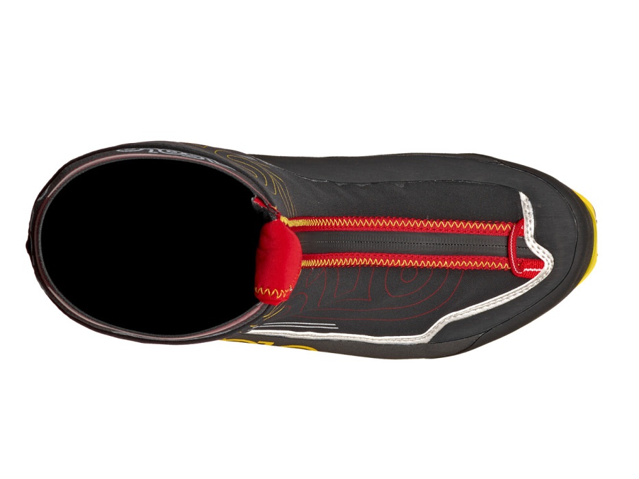 Vnější manžeta z materiálu Schoeller Soft Shell a gumová obsázka po celém obvodu chrání boty před mechanickým poškozením a vlhkostí zvenčí. Té ostatně stojí v cestě i membrána Gore-Tex. Pod manžetou, uzavřenou voděodolným YKK zipem, se skrývá rychlošněrovací systém, který utáhnete i s rukavicemi na rukou. Vespod pak operuje podešev Vibram se směsí Mont pro perfektní přilnavost i v mrazivých podmínkách.