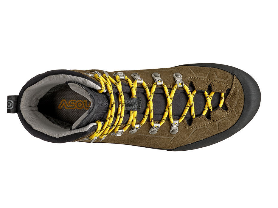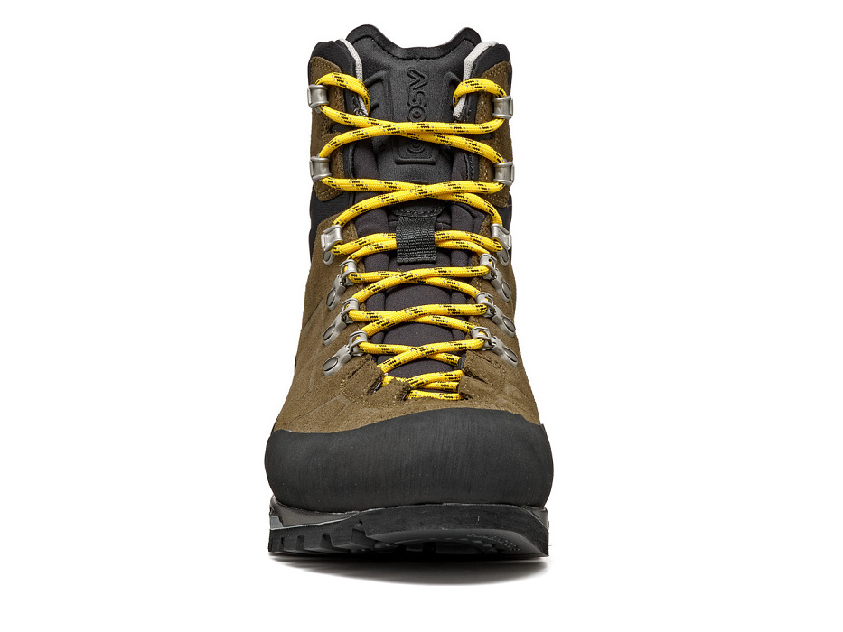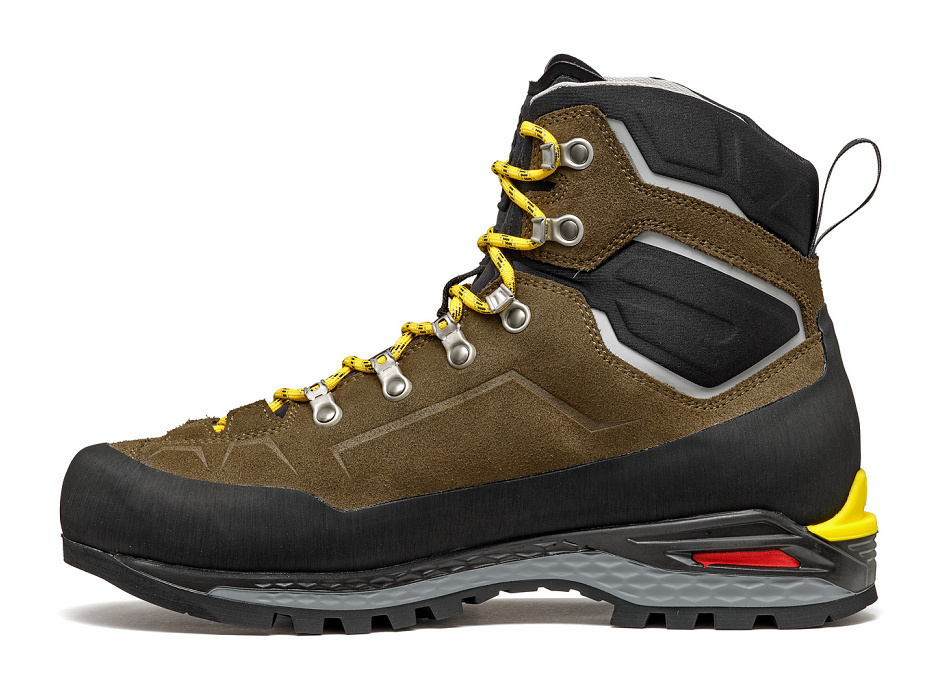 Sníh, led a skála. Nevyzpytatelný terén, ve kterém při každém kroku zvedáš navíc ještě tíhu batohu. Tam nahoře musí být každý krok přesný a promyšlený. A tak ti tyto pevné pohorky od Asola pomohou najít tu správnou oporu. Jejich kostra je vyztužená nylonem a skelnými vlákny, takže mačky na pohorkách dobře sedí a pevně se zakousnou do ledu, který ti zkříží cestu. Přestože je podešev pro větší jistotu v nestabilním terénu jen málo ohebná, lezecká špička ti pomůže ustát i menší skalní stupy. A protože v horách se potkáš s ledasčím, mají pohorky svršek z odolné Perwanger kůže, kterou po obvodu chrání gumová obsázka.