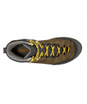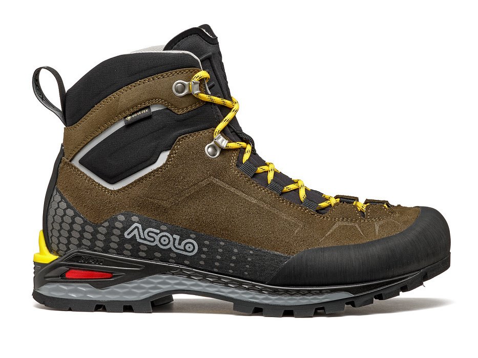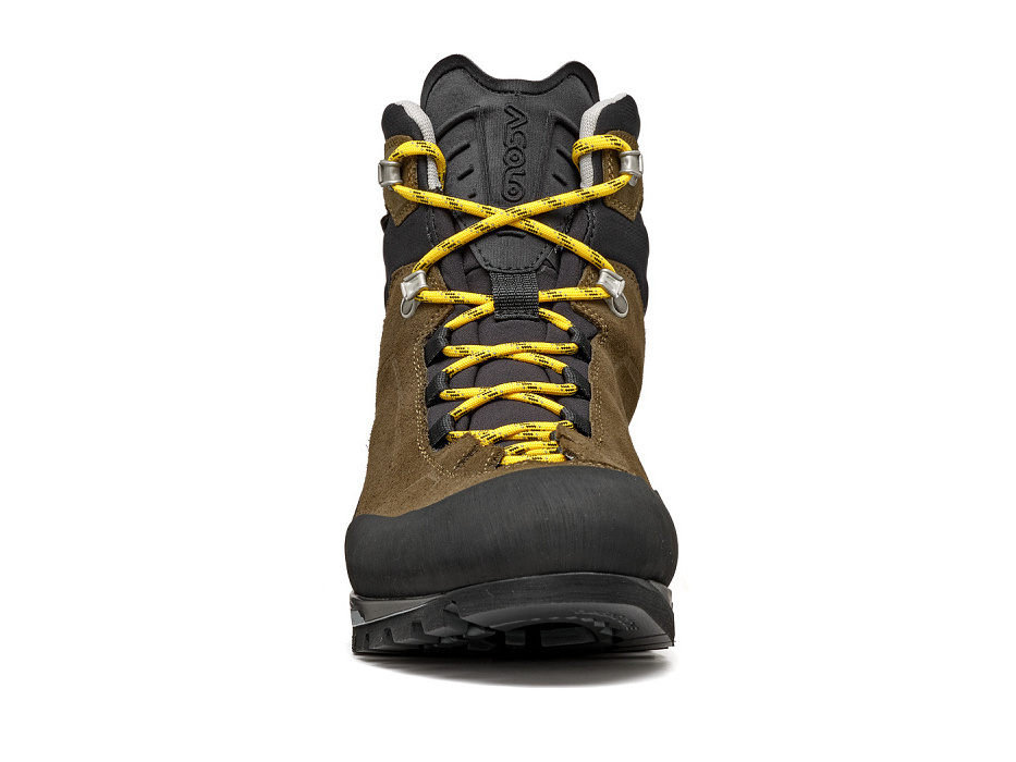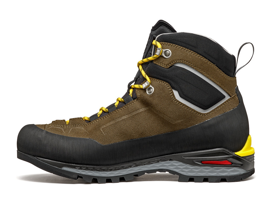 Cesta na druhou stranu hor, to je spousta volného kamení, nestabilní suti, sněhových polí a lezeckých pasáží ovinutých ocelovým lanem. Výzva? Rozhodně. Tyto středně tuhé pohorky ti ale v náročném terénu pomohou najít ten správný balanc. Podešev, kterou v Asolu lehce vyztužili, zůstala tak akorát ohebná, aby na ní držely poloautomatické mačky a přitom se s ní dobře kráčelo stezkou nebo lezlo po skále. Malé skalní stupy ti navíc pomůže ustát rovná lezecká špička. Při ostrých sestupech odlehčí kolenům EVA odpružení v patní části. A všem nástrahám vysokých hor se postaví odolná Perwanger kůže, navíc vyztužená obsázkou.
