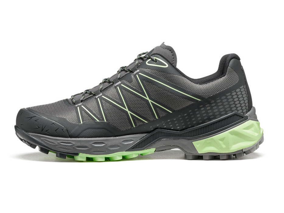 Ten pocit! – když stezka ubíhá pod nohama, hlasité oddechování provází pohyb a do svalů ve vkrádá lehký žár. Svižné tempo je ti možná bližší než loudavý krok, ale v členitém terénu pak potřebuješ spolehlivé obutí, ve kterém nezaváháš ani s kumulující se únavou. Pro tyto lehké boty vytvořilo Asolo speciální podešev s novou směsí Sigma Grip, která výborně drží na mokrém povrchu, vyniká samočistícími schopnostmi a je výjimečně odolná vůči opotřebení. Podpůrná technologie AS Tech omezuje nežádoucí zátěž a vybočování kolen a mezipodešev z EVA pohlcuje nárazy, které dokážou znepříjemnit každý sestup. A kdyby ti cestu zkřížilo sněhové pole či snad rozvodněná říčka, nepromokavá membrána Gore-Tex® zachová v botách sucho.