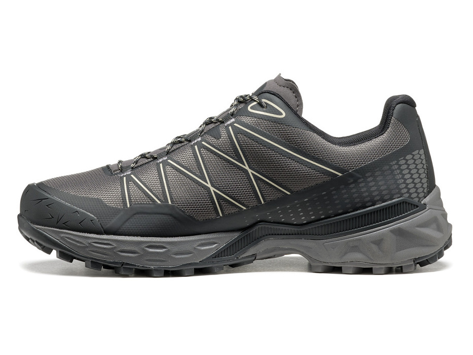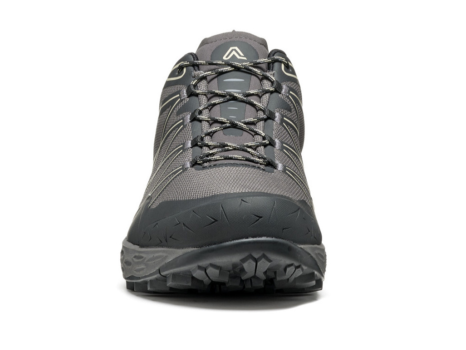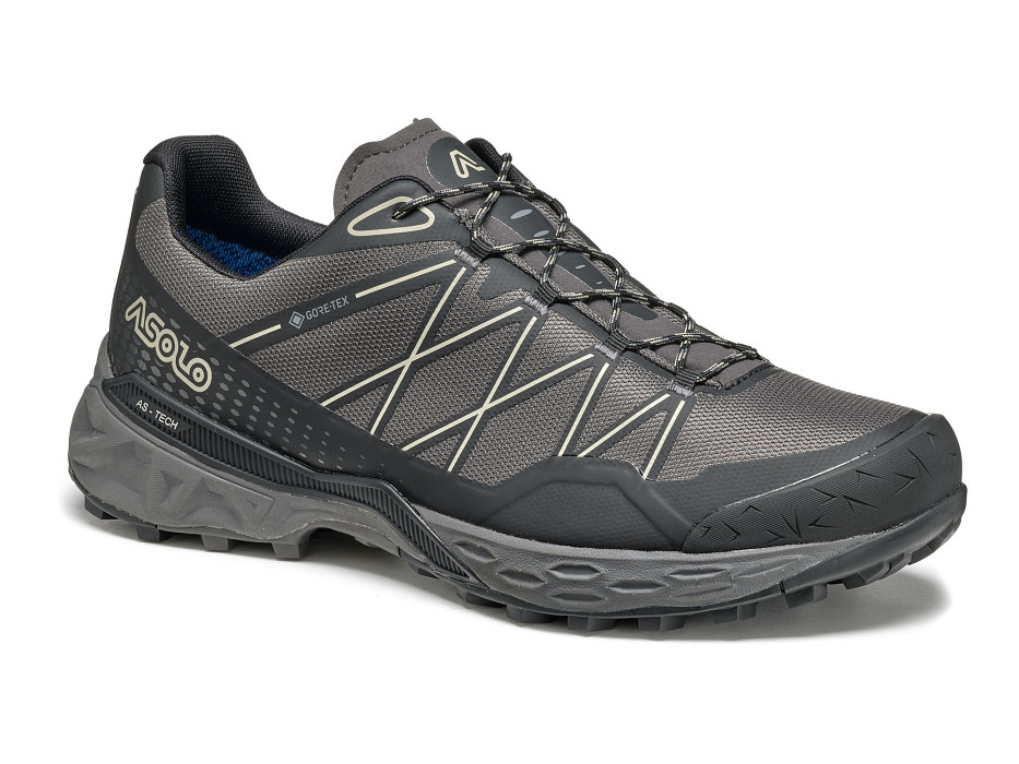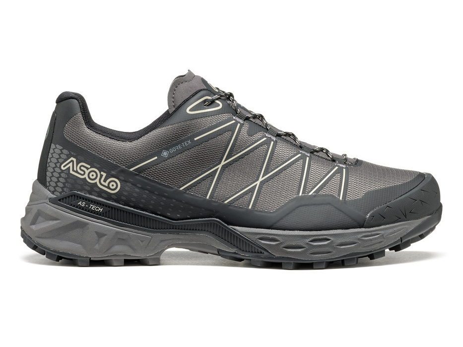 Ten pocit! – když stezka ubíhá pod nohama, hlasité oddechování provází pohyb a do svalů ve vkrádá lehký žár. Svižné tempo je ti možná bližší než loudavý krok, ale v členitém terénu pak potřebuješ spolehlivé obutí, ve kterém nezaváháš ani s kumulující se únavou. Pro tyto lehké boty vytvořilo Asolo speciální podešev s novou směsí Sigma Grip, která výborně drží na mokrém povrchu, vyniká samočistícími schopnostmi a je výjimečně odolná vůči opotřebení. Podpůrná technologie AS Tech omezuje nežádoucí zátěž a vybočování kolen a mezipodešev z EVA pohlcuje nárazy, které dokážou znepříjemnit každý sestup. A kdyby ti cestu zkřížilo sněhové pole či snad rozvodněná říčka, nepromokavá membrána Gore-Tex® zachová v botách sucho.