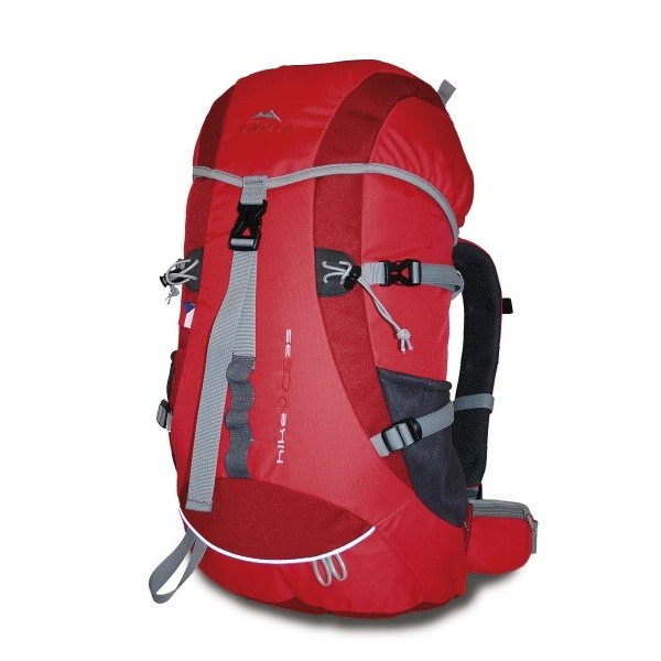 Vybavení: Vrchní část s kapsou. Kompatibilita s vodním vakem. Dvojitý silonový límec zaručující dokonalé uzavření ruksaku. Vnitřní celoplošná kapsa. Boční elastické kapsy. Boční kompresní pásky. Smyčky pro cepín a vysokohorské náčiní. Úchyty na přední straně ruksaku slouží k připevnění dalšího materiálu. Pláštěnka ukrytá ve dně ruksaku.
