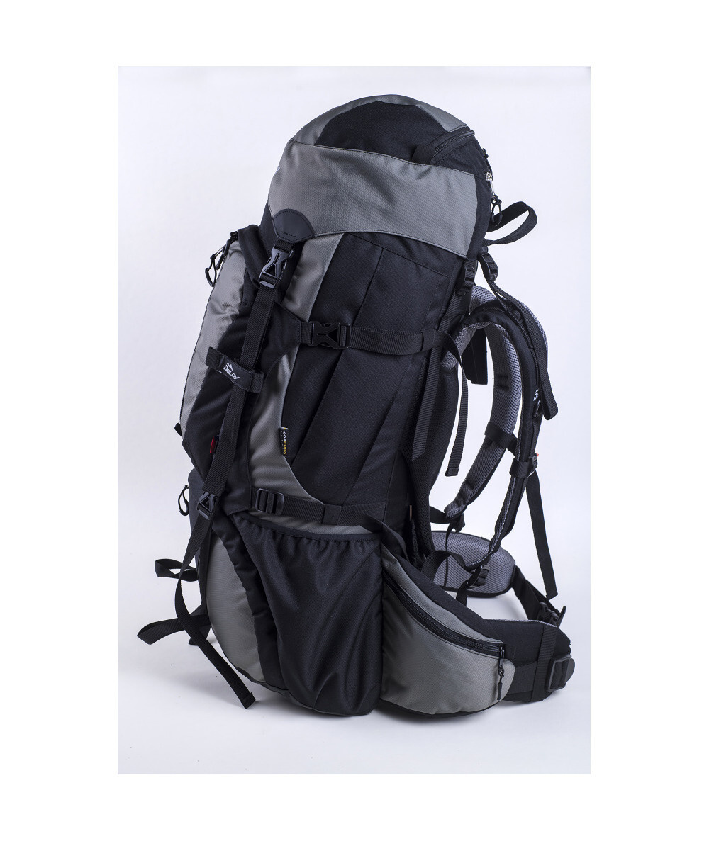 Vybavení: Vrchní, přední a spodní přístup do ruksaku. Odjímatelná a výškově nastavitelná vrchní část s dvěma kapsami. Boční kompresní pásky, které umožňují stabilní upevnění nákladu. Boční síťové kapsy pro uchycení lahve atd. Kapsy na bederním pásu. Boční kapsy na zip. Velká kapsa na zip na přední straně ruksaku. Dvojitý silonový límec zaručující dokonalé uzavření ruksaku. Smyčky pro cepín a vysokohorské náčiní. Vnitřní celoplošná kapsa. Pláštěnka ukrytá ve vrchní části ruksaku.