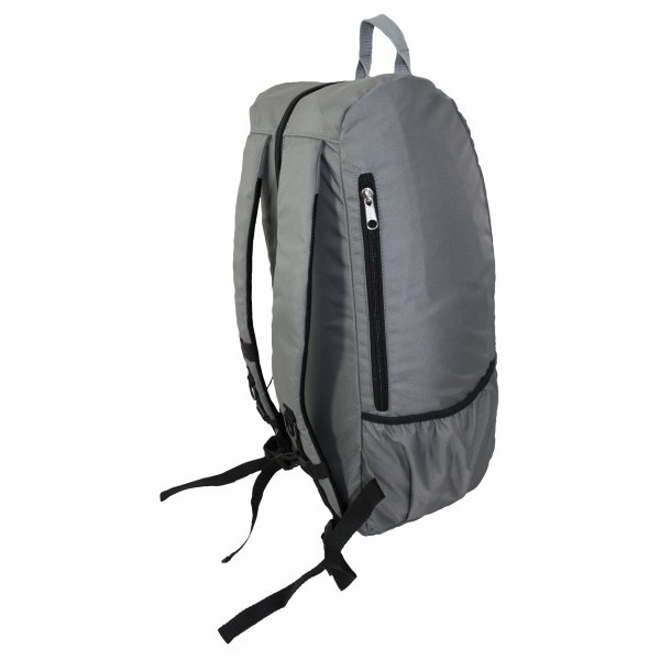 Vybavení: Hlavní zip na zadní straně batohu. Úchyty na čelní straně ruksaku. Boční otevřené kapsy. Kapsa na zip přístupná z boku ruksaku. Malá kapsa na zip uvnitř batohu. Velká vnitřní otevřená kapsa. Plachtička na lano nebo na převlečení.