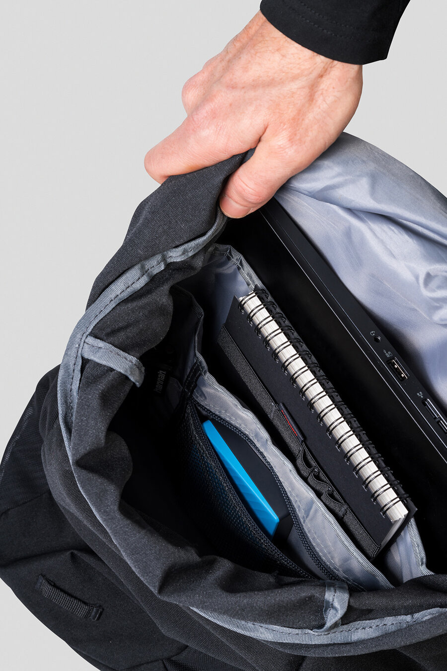 Uvnitř se nachází polstrovaná kapsa na notebook a kapsa s organizérem. Na zádech batoh perfektně sedí díky polstrovaným ramenním popruhům a hrudnímu popruhu. Při večerních cestách oceníš úchyt na blikačku. Drobnosti si uschováš do dvou bočních kapes a nebudeš tak muset složitě hledat klíče nebo kapesníky.