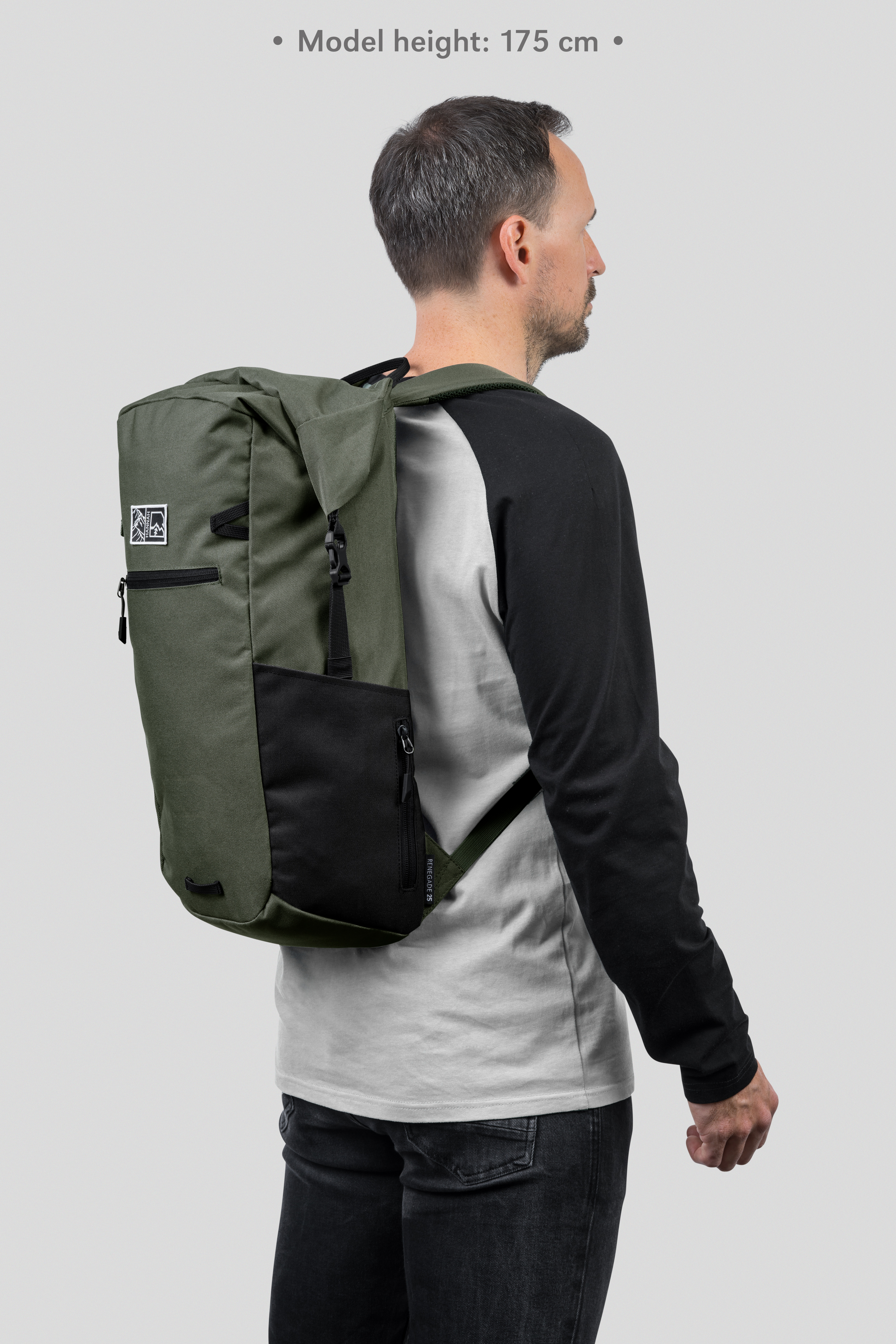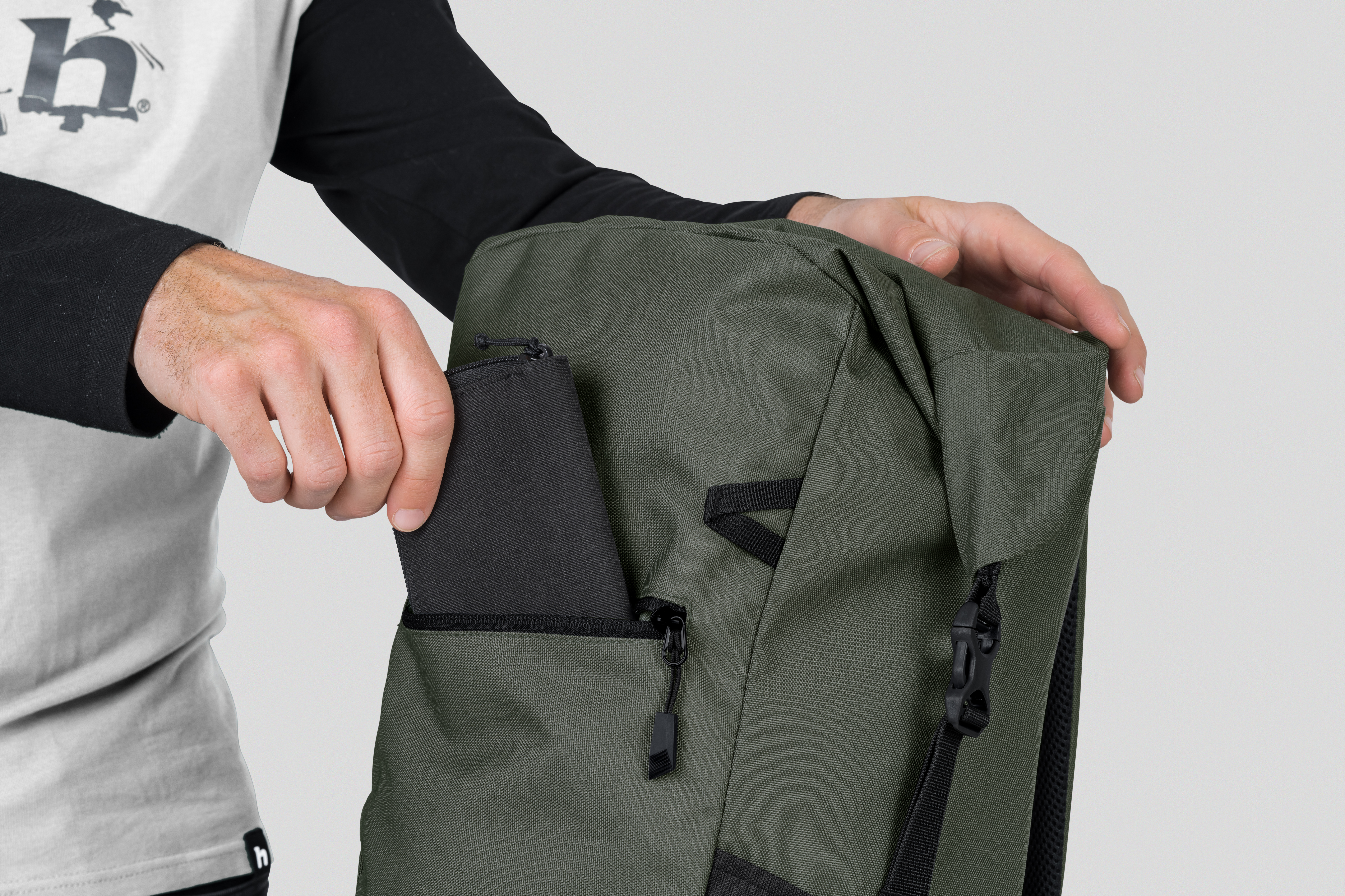 Jednokomorový volnočasový batoh Hannah Renegade 25 je tím správným společníkem pro volný čas i na cesty do práce. Batoh v sobě skloubí zajímavý design a praktickou funkčnost. Dominantním prvkem je zavírání vnitřního prostoru rolováním. Uvnitř se nachází polstrovaná kapsa na notebook a kapsa s organizérem, která je krytá víkem. Vpředu najdeš další kapsu na zip. Na zádech batoh perfektně sedí díky polstrovaným ramenním popruhům a hrudnímu popruhu. Při večerních cestách oceníš úchyt na blikačku. Drobnosti si uschováš do dvou bočních kapes a nebudeš tak muset složitě hledat klíče nebo kapesníky. Do hlavní komory se snadno dostaneš i bočním vstupem. Unikátnost tohoto batohu spočívá v tom, že je vyroben z recyklovatelných 13 kusů PET lahví.