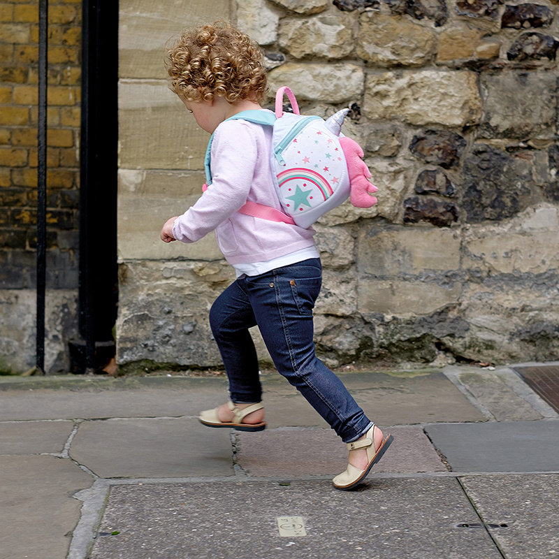 Dětský 2l batůžek s motivem jednorožce je určený pro děti od 1 až do 3 let. Do batůžku se vejde oblíbená hračka nebo pití na cestu. Důležitou součástí je bezpečnostní vodítko, které zajišťuje rodičům kontrolu dětí v rušných prostorách, ulicích, parku, a zároveň jim umožňuje svobodu, kterou potřebují k vybudování své vlastní důvěry.