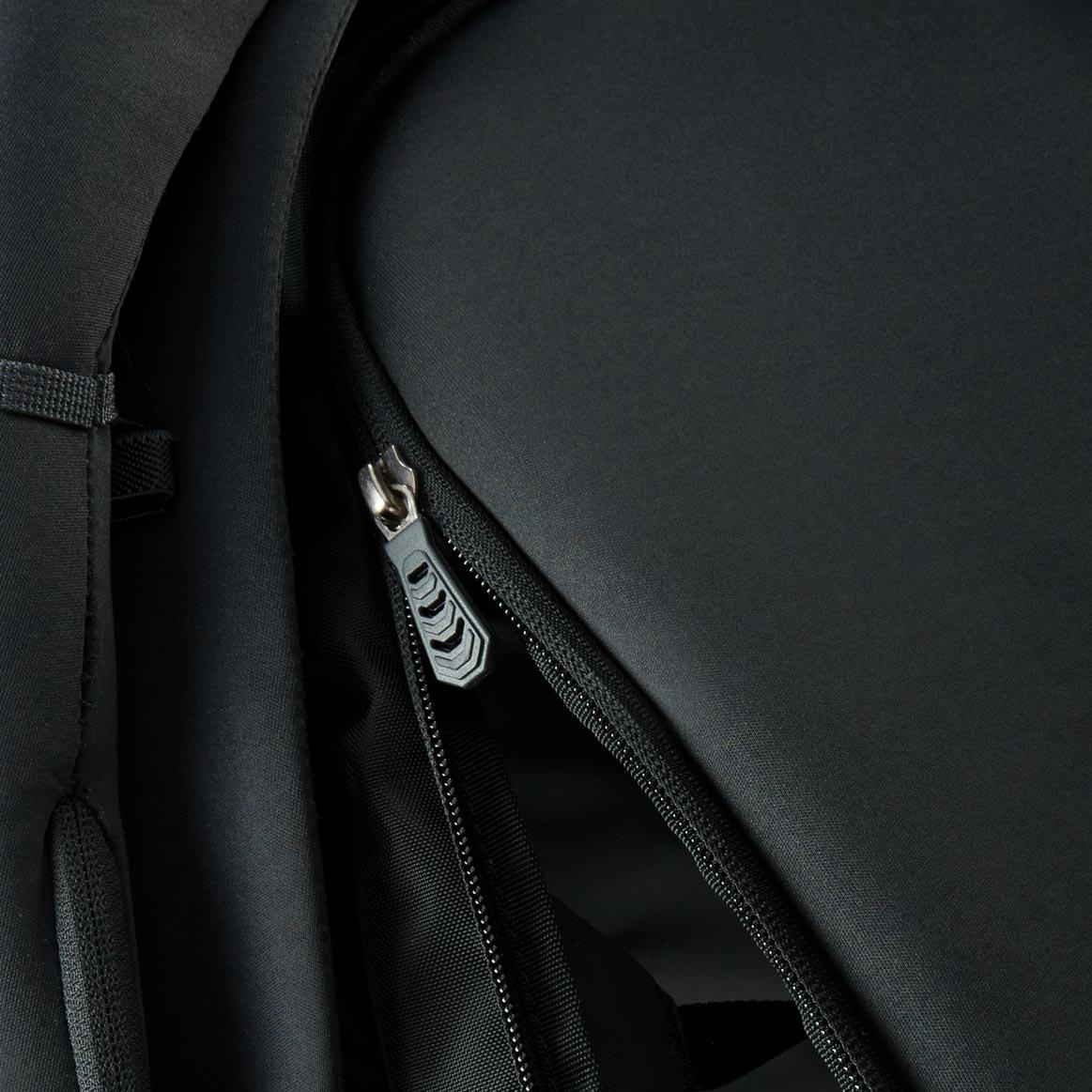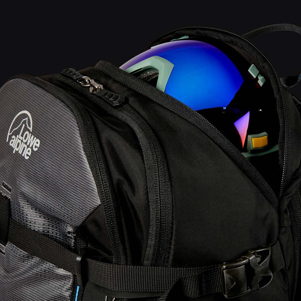 Vyztužená záda s funkcí ochrany páteře se dají otevřít a vznikne zadní vstup do batohu. Batoh lze otevřít položený na sněhu bez zanesení zad sněhem.