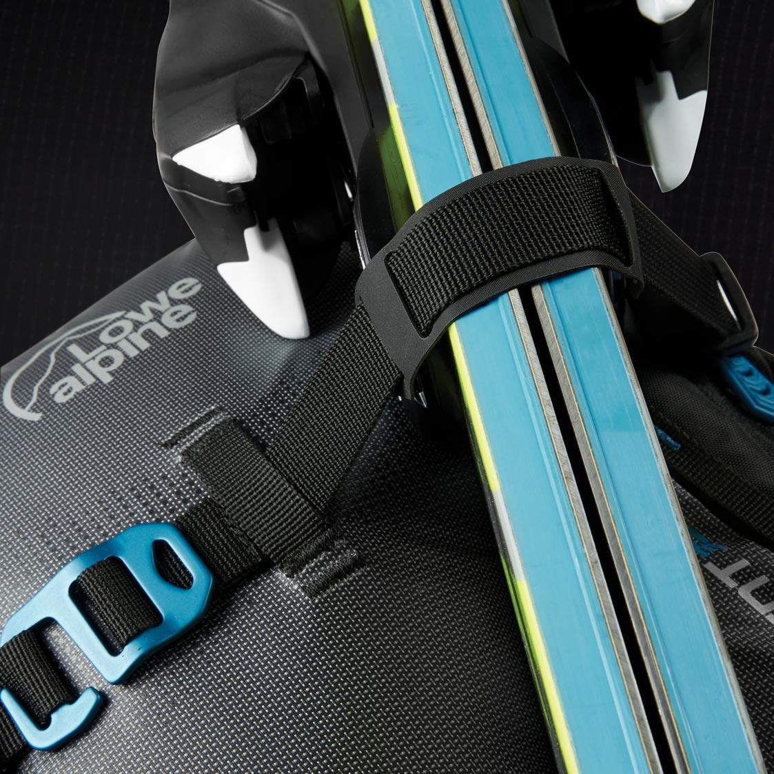 Kritická místa batohu, náchylná k poškození hranou lyže nebo mačkou, jsou z extra odolného materiálu Trishield Dura.