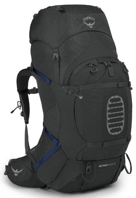 Špičkový turistický pánský batoh s jedinečným zádovým systémem AirScape™ od značky Osprey. Batoh Aether plus 70 je navržen pro vícedenní cestování a pro nošení těžších nákladů. Špičkový nastavitelný zádový systém AirScape™ kombinuje komfort a odvětrání a získal několik evropských i světových ocenění. Přesný popis: nastavitelná délka zad podle výšky jeho majitele; 3 vstupy - vrchem přes vrchlík, spodem na zip a přední vertikální vstup na zip; integrovaná odnímatelná pláštěnka; externí kapsa na rezervoár na vodu; lehký obvodový rám; tepelně formovaný bederní pás “ IsoFormTM“; odnímatelné popruhy na karimatku; vrchlík s dvojitou kapsou; boční kompresní popruhy; uvnitř je rozdělitelný na dvě komory – spodní komora vhodná na spací pytel; přední strečová kapsa vhodná např. na mokrou bundu; hrudní popruh s nouzovou píšťalkou; uvnitř vrchlíku klip na klíče; celý batoh lze stáhnou kompresními popruhy tzv. „StraightJacketTM“; po stranách batohu 2 velké meshové kapsy s tzv. InsideOutTM kompresní funkcí – boční kompresní popruh můžete nechat pod kapsou pro lepší kompresi batohu, nebo jej přetáhnout přes kapsu pro zajištění obsahu kapsy (např. láhve); 2 očka na cepín; na bederním popruhu dvě kapsy, jistě oceníte jedinečný Stow-on-the-Go System ™ na uchycení holí na batoh