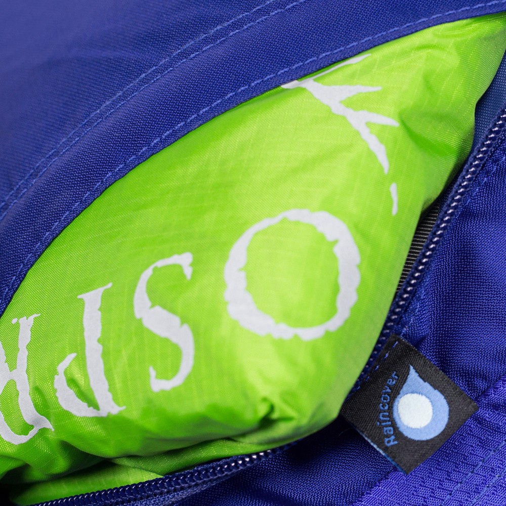 - po stranách batohu 2 velké meshové kapsy s tzv. InsideOutTM kompresní funkcí – boční kompresní popruh můžete nechat pod kapsou pro lepší kompresi batohu, nebo jej přetáhnout přes kapsu pro zajištění obsahu kapsy (např. láhve)