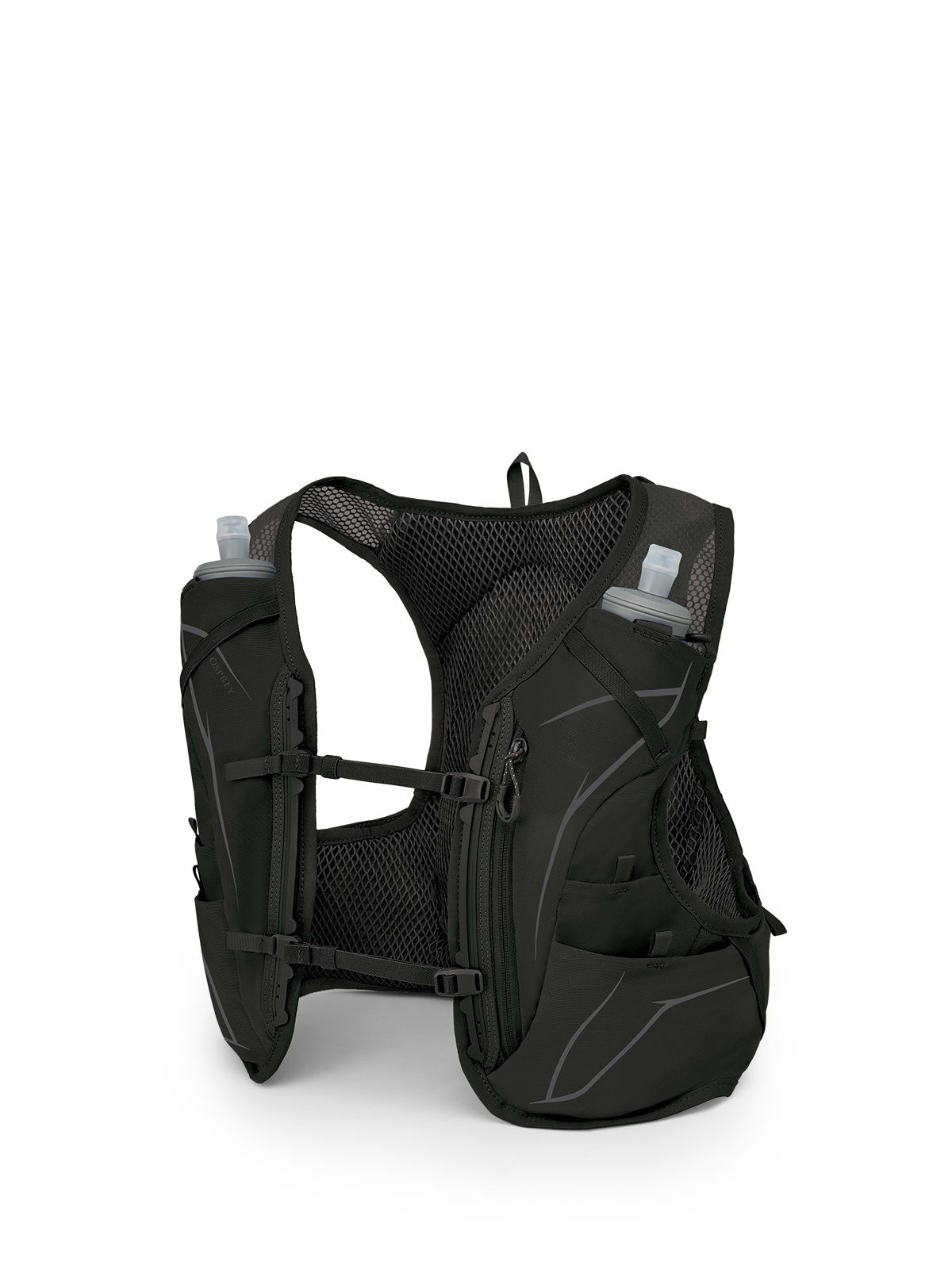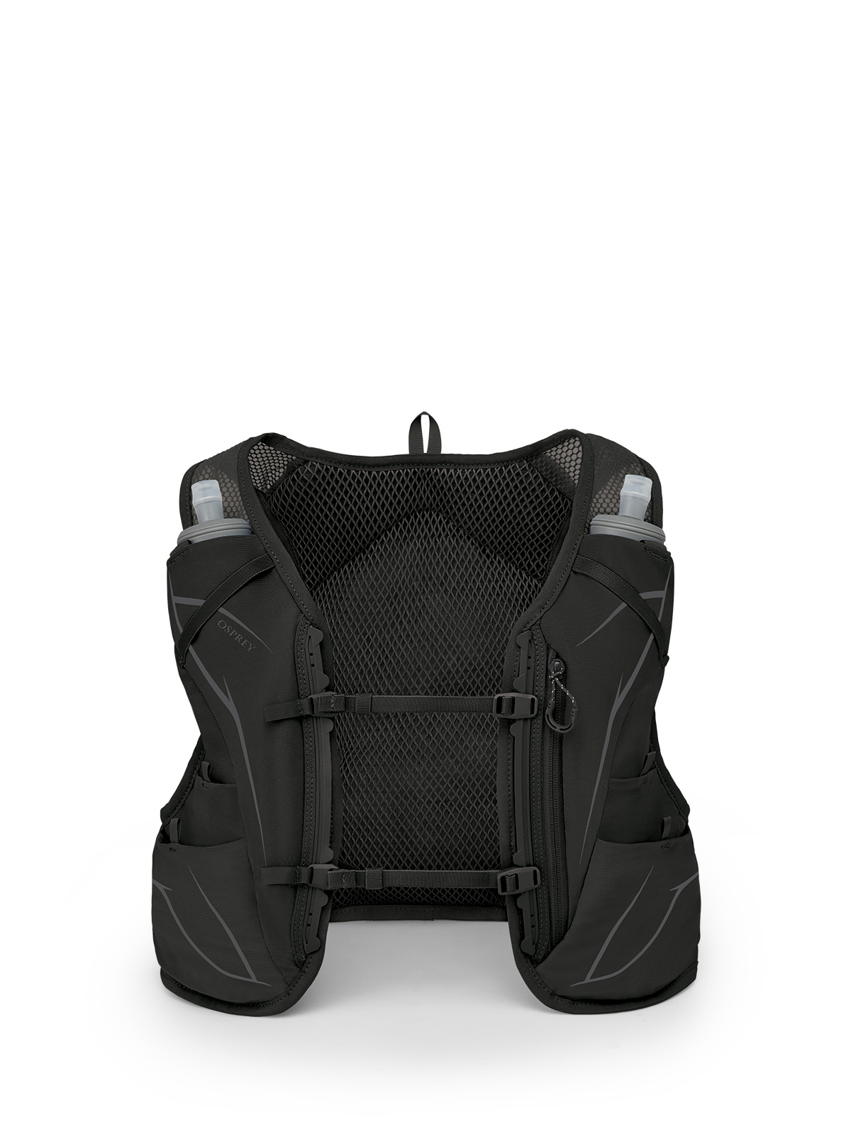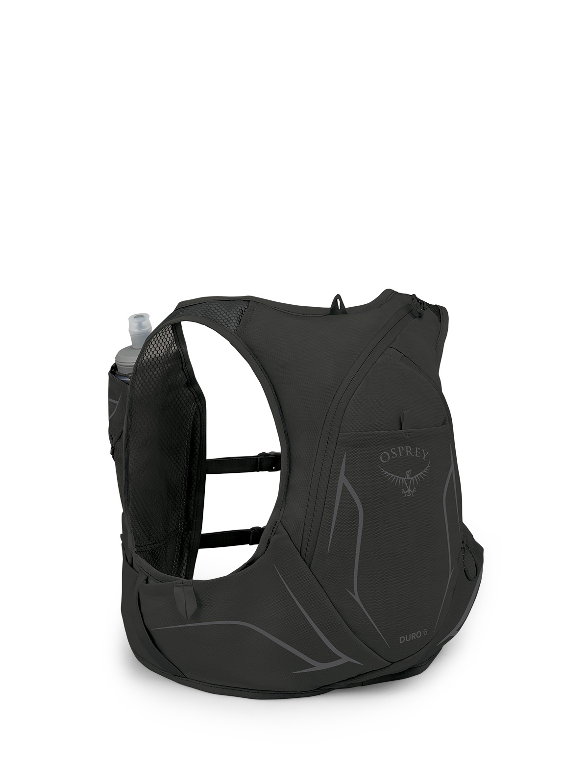Zcela nový běžecký batoh/vesta – Duro 6 – je středně-kapacitní běžecký batoh designovaný pro běžce na delší tratě, kteří vyžadují místo pro vodu, oblečení, jídlo a vybavení. Bederní pás perfektně obepíná boky, ramenní popruhy jsou ve stylu vesty – to dovoluje komfortní nošení a omezuje poskakování batohu. Duro 6 byl navržen k běhu, ideálně pro ty, kteří rádi jdou až na svůj běžecký limit. Detaily: 2 hrudní popruhy nastavitelné, odnímatelné, integrovaná kapsa na vodní vak, včetně: 2x 500ml láhev Soft Flask s pítkem a prodlužující trubičkou, Stow-on-the-Go System™ na uchycení holí na batoh, několik kapes z materiálu PowerMeshTM, přední strečová kompresní kapsa, karabinka na klíče, poutko na LED světlo, reflexní grafika, boční strečové meshové kapsy