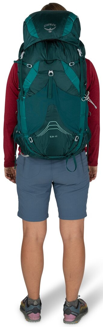Ultra lehký batoh si získá vaše srdce nejen díky pohodlnému zádovému systému. Batoh EJA už patří mezi stálice na poli ultralehkých batohů a nyní představuje další technická vylepšení. Inovovaný zádový systém Airspeed vám poskytne podporu, perfektní ventilaci a délku si nastavíte přesně podle sebe. Vyladěné ramenní popruhy vám dovolí pohodlně nosit i větší zátěž. Díky FlapJacket se dá batoh EJA bez problémů nosit i bez víka. Jistě oceníte kapsy na bocích, kapsy z pružné síťoviny vpředu nebo na bederním pásu. S vysoce pevným nylonovým materiálem si můžete být jistí, že batoh zvládne i hrubší zacházení.