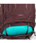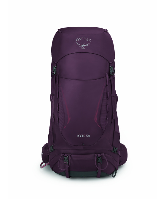 Kyte 58 je dámský turistický batoh ideální pro outdoorové profesionálky i cestovatelky, které si zamilovaly poznávání nových míst jen s batohem na zádech. Díky objemu 58 litrů do něj sbalíte vše potřebné na na vícedenní puťák i několikatýdenní backpacking po jihovýchodní Asii. Do hlavního prostoru se dostanete nejen vrchem, ale i přes postranní zip, což usnadňuje organizaci věcí a vybavení i hledání toho, co zrovna potřebujete. Batoh nabízí dostatek úložného prostoru uvnitř i zvenku - třeba nastavitelný vrchlík s vnitřní a vnější kapsou, strečovou přední kapsu, síťované boční kapsy nebo kapsy na bederním pásu. Nechybí ani popruhy k připevnění trekových holí nebo cepínů a poutka k připnutí materiálu a vybavení. Specificky dámský střih zajistí, že tento batoh skvěle sedí každému typu postavy. Batoh je vyroben z pevných, udržitelných materiálů (nylon), které zvládnou i hrubší zacházení a jsou ošetřeny vodoodpudivou DWR úpravu (vyrobenou bez použití PFAS.) Integrovaná pláštěnka uložená v kapse na zip ve spodní části batohu. Zádový panel AirScape nabízí vylepšené nastavení délky trupu a nový vstřikovaný rám, což zajistí stabilitu, prodyšnost a skvěle padnoucí tvar pro pohodlné nošení i na náročných stezkách. Vrchlík (nastavitelný) s velkou kapsou na zip a zespodu síťovanou kapsu na zip s karabinou na klíče. Možnost připnutí vybavení a materiálu k hornímu panelu. Vnitřní kapsa na hydrovak se sponou Hydraclip pro snadnější zavěšení hydrovak . Strečová přední kapsa. Dva popruhy "daisy chain" s oky pro uchycení vybavení na předním panelu. Dva postranní kompresní popruhy v horní části s možností fixace cepínu/trekových holí. Dva postranní kompresní popruhy ve spodní části. Přihrádka na spací pytel na zip s pohyblivou přepážkou. Odnímatelné popruhy na karimatku. Dvě poutka na cepín. Systém Stow-on-the-Go k připevnění trekových holí. Dvě síťované postranní kapsy. Přístup do hlavního prostoru vrchem a přes postranní zip. Postranní kapsa na zip po celé délce batohu. Vnitřní kompresní popruh. Bederní pás Fit-on-the-Fly™ s kapsami. 3,5mm obvodový rám LightWire účinně přenáší zátěž z popruhů na bederní pás. Rám Atilon rozkládá zátěž přes celý zádový panel do obvodového rámu. Pěnové výstupky potažené síťovinou umožňují maximální ventilaci a zároveň zajistí, že zátěž přiléhá k tělu. Jemná polstrovaná síťovina nabízí měkkou a prodyšnou kontaktní plochu a velkou oporu při zatížení. Nastavitelný hrudní popruh s pohotovostní píšťalkou.