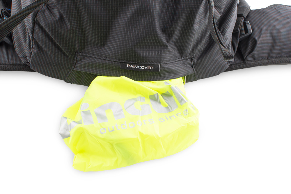 - Výrazná pláštěnka v samostatné zipové kapse na dně batohu