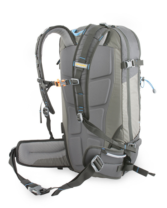 - Dvě komory - přední pro samostatné uložení a snadnou dostupnost lavinové výbavy a hlavní komora pro přepravu oblečení, potravy a další nezbytné výbavy pro cesty volným terénem.