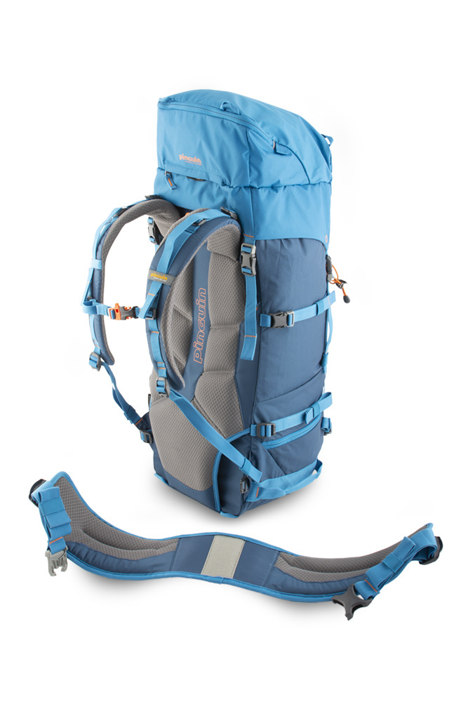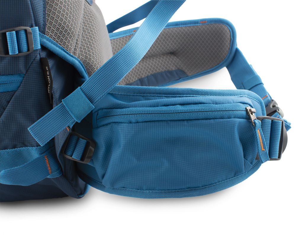- Odepínatelný bederní pás pomáhá efektivně rozložit hmotnost přenášeného nákladu mezi boky a záda.