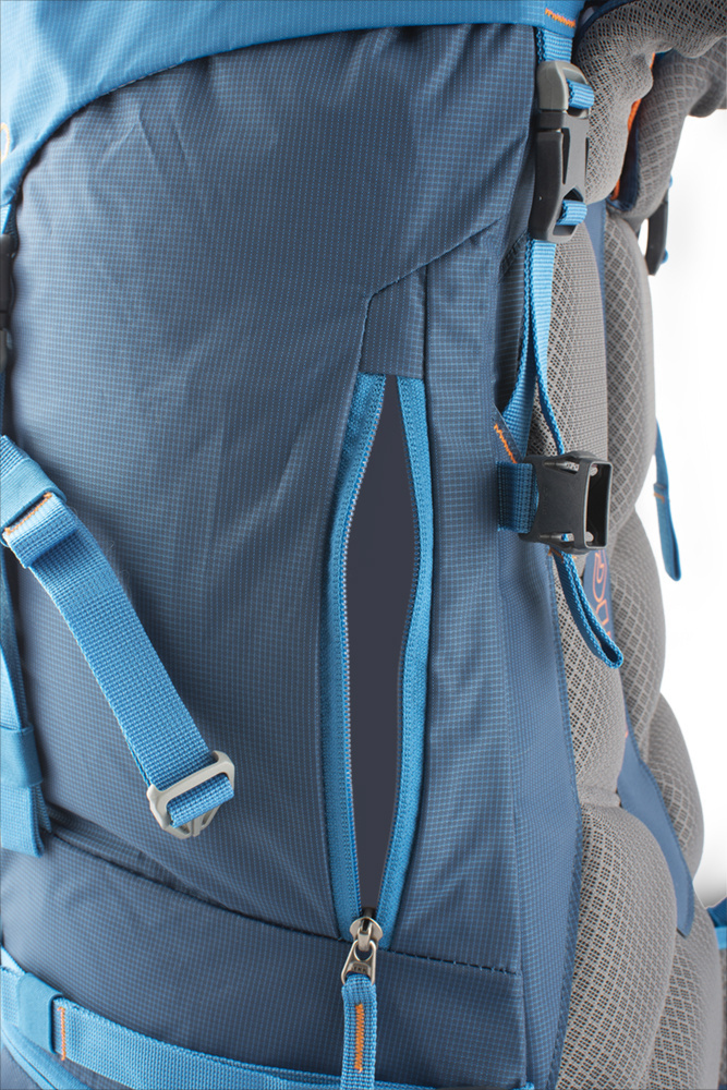 - Boční zipový vstup do batohu jištěný popruhem = snadný přístup k lahvi, rukavicím či bundě.