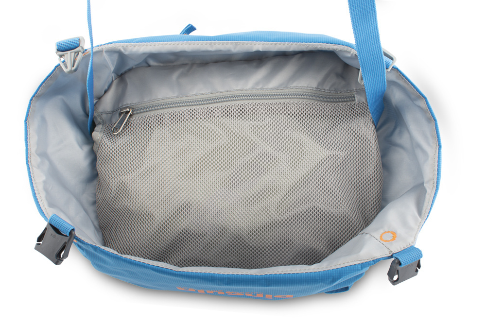 - Síťovaná zipová kapsa na vnitřní straně víka na cennosti s karabinkou na klíče.