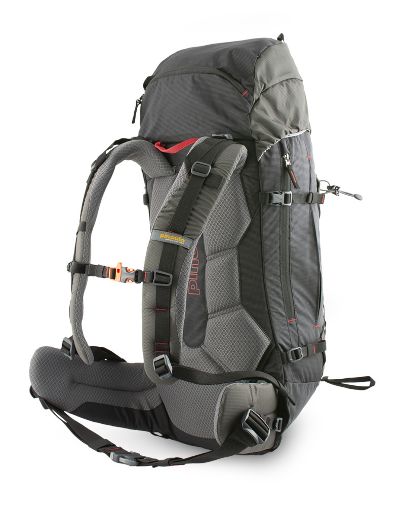 - Záda batohu jsou vyztužena vyjímatelnou HDPE deskou s integrovanou duralovou výztuží, která pomáhá rozložit hmotnost přepravovaného nákladu na záda a eliminuje tlaky přepravovaných předmětů do zad