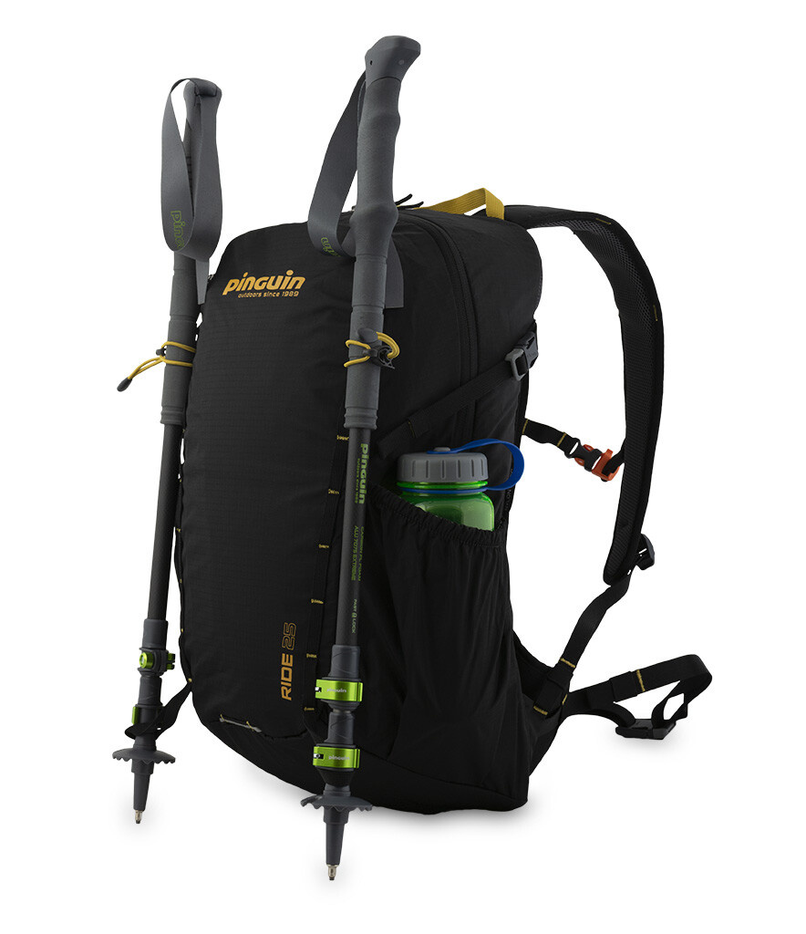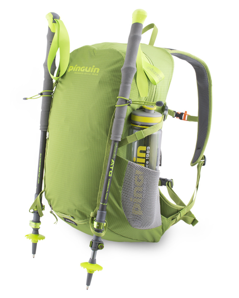 - Pružná poutka s háčky na připevnění teleskopických holí a poutka na dně batohu.