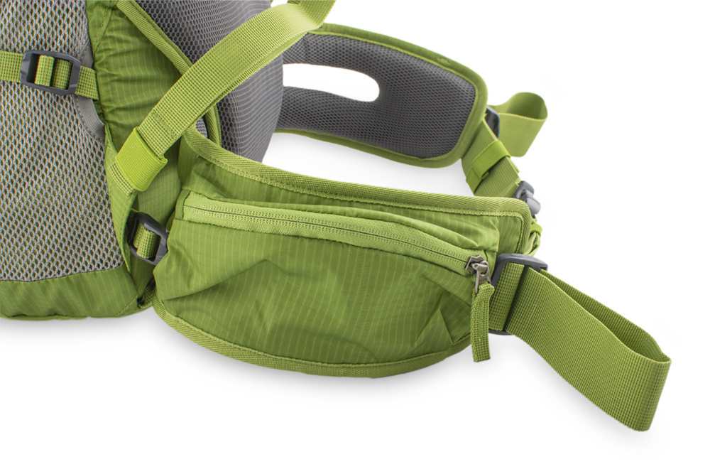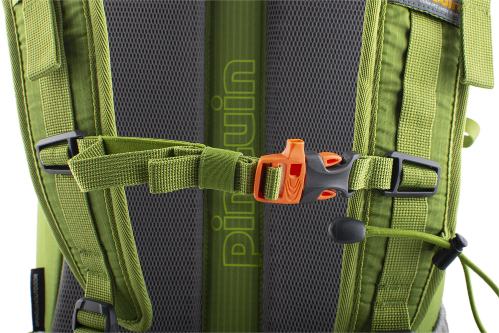 - Výškově nastavitelný a odepínatelný hrudní popruh s píšťalkou pro případ nouze.Odlehčený bederní pás pro lepší přilehnutí k bokům a lepší ventilaci.Zipová kapsa na pravé straně bederního pásu.Poutko na materiál na levé straně bederního pásu.