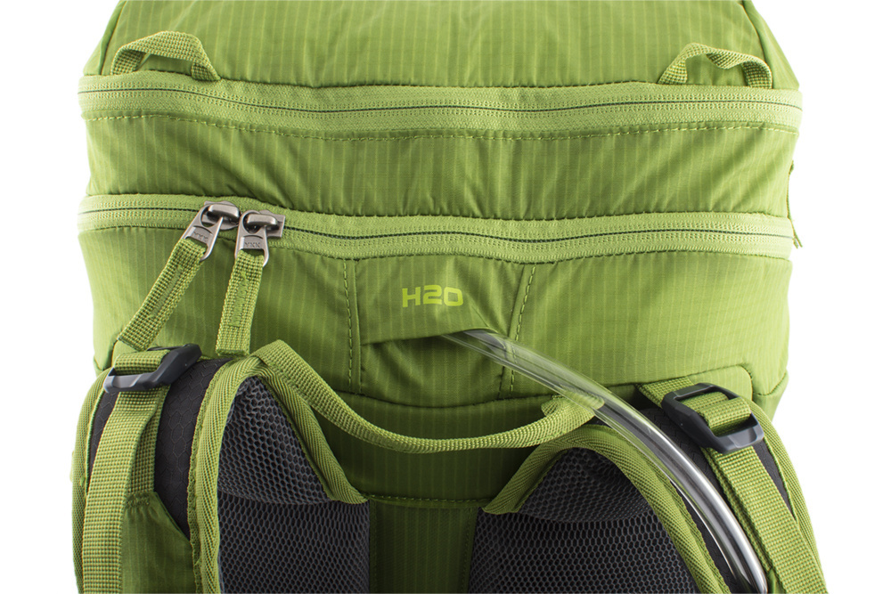 - Výstup na hadici vodního vaku mezi ramenními popruhy.