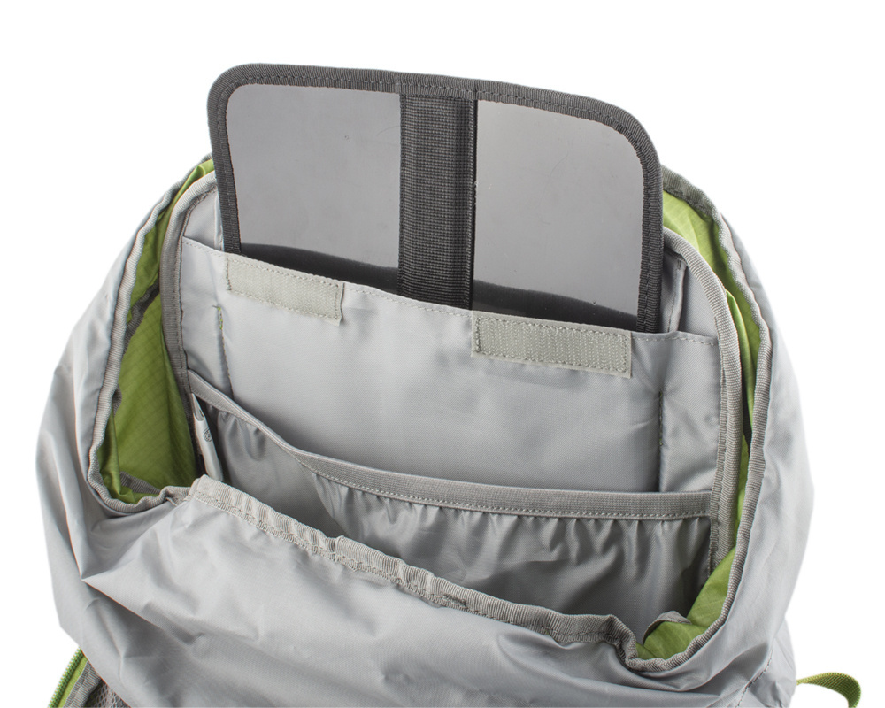 - Záda batohu jsou vyztužena vyjímatelnou HDPE deskou s integrovanou duralovou výztuží, která pomáhá rozložit hmotnost přepravovaného nákladu na záda a eliminuje tlaky přepravovaných předmětů do zad.