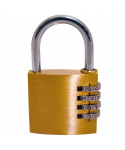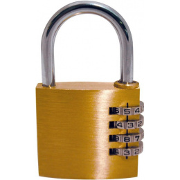 snadno nastavitelný mosazný kombinační zámek určeno k zabezpečení majetku bez nutnosti starat se o klíč -4číselný kód se stovkami možných kombinací pro větší bezpečí a ochranu umožňuje zvolit si snadno zapamatovatelnou kombinaci dostupný ve dvou velikostech