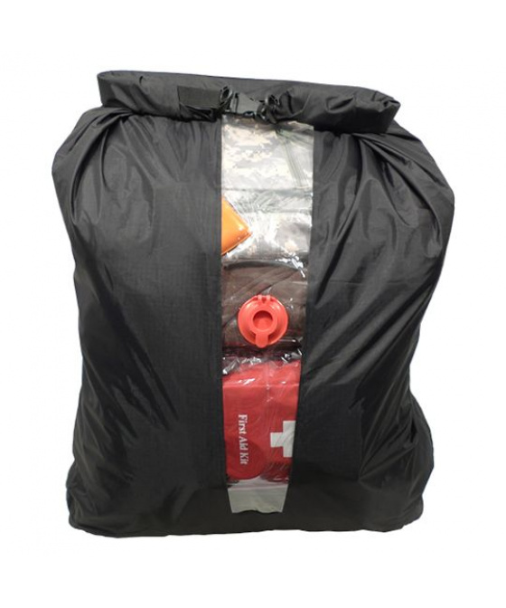 objemný černý lodní vak 60l z pevného nylonu se zátěrem pro zvýšení odolnosti proti vodě, rolovacím uzavíráním, vypouštěcím ventilem k vypuštění vzduchu pro snížení objemu a transparentním pruhem pro přehlednostVíce
