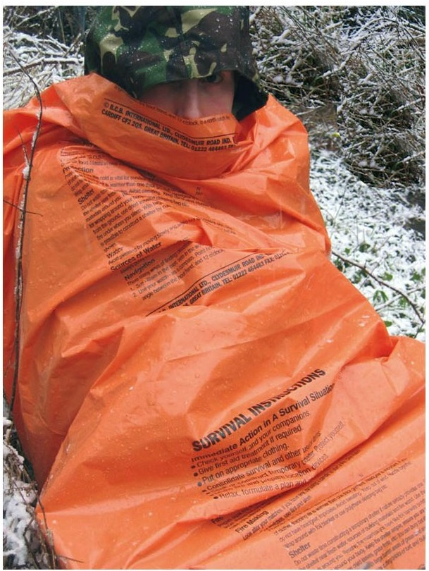 velmi dobře viditelný univerzální nouzový vak okamžitá ochrana před větrem, deštěm a chladem pomáhá předejít hypotermii potisk s instrukcemi pro přežití v angličtině lze použít na skladování výstroje, jako nouzové přístřeší, při zdvojení jako podlážku nebo jako výstražné znamení schváleno pro použití ve složkách NATO (NSN-8465-99-684-4041)Více