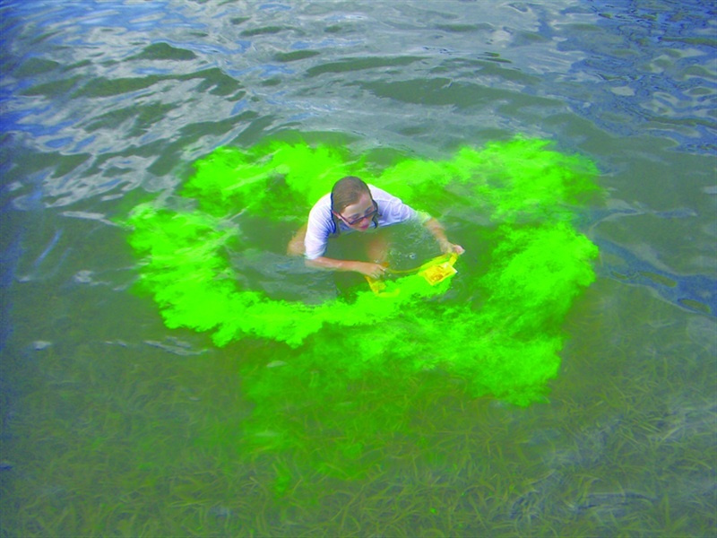 nouzový značkovač obsahující netoxické chemikálie používaný jako pomůcka při záchranných akcích na moři a obsahující fluorescenční barvivo, které je viditelné na několik kilometrů až po dobu 30-40 minutVíce
